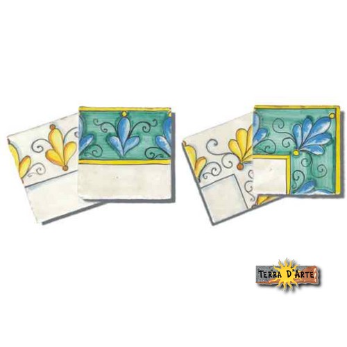“I seguenti decori fatti a mano, se richiestoci specificatamente, possono essere realizzati anche su supporto in cotto industriale e Pietra Lavica, senza intaccare la decorazione che verra’ reallizzata manuale.”